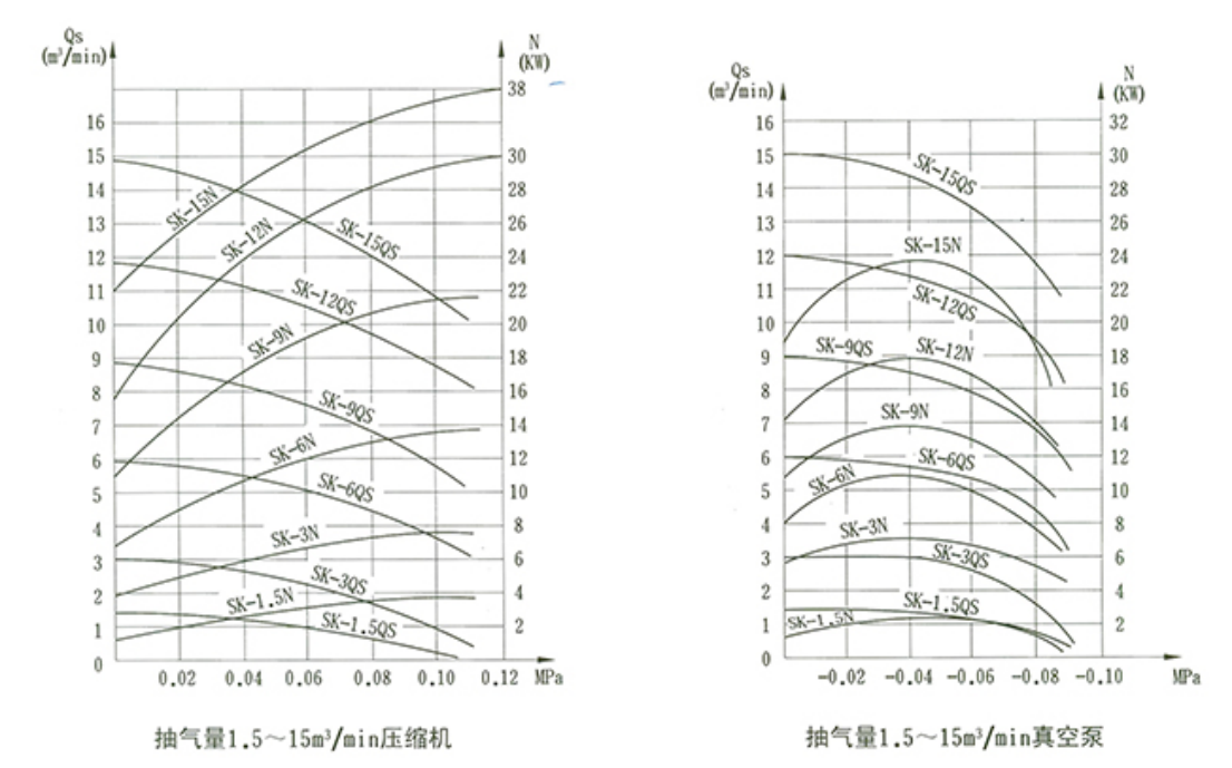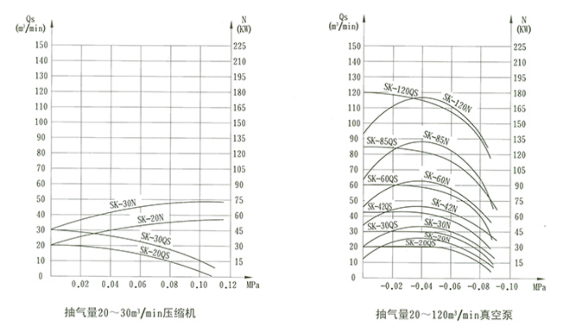 SK系列水环泵及压缩机是用来抽吸或压送气体和其它无腐蚀性、不溶于水、不含有固定颗粒的气体,以便在密闭容器中形成真空或压力,满足工艺流程要求。吸入或压送的气体中允许混有少量的液体。